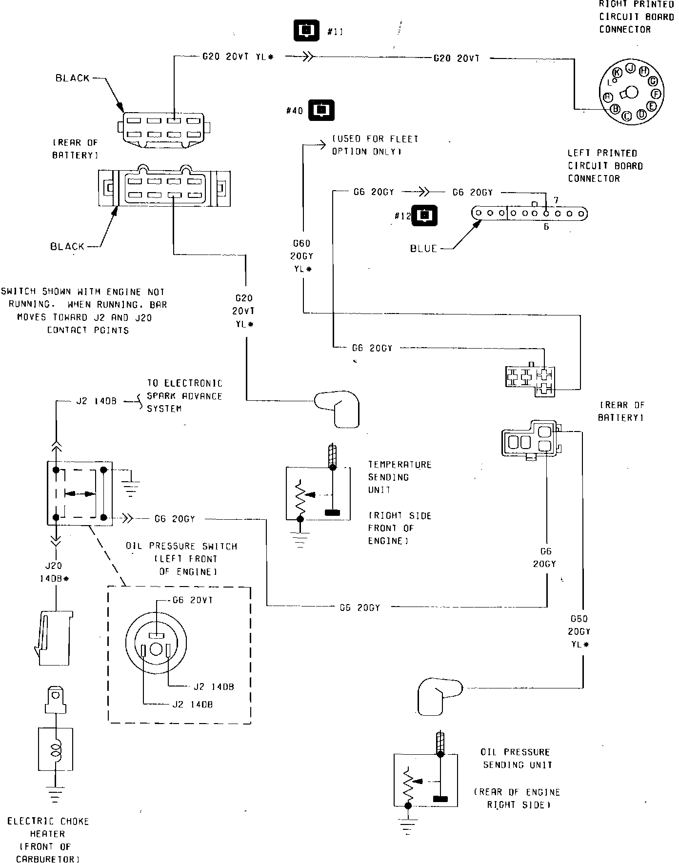 Fig. 13 Brake, Oil & Temperature Switch Wiring Circuit. 1985 W/2.2 Litre Engine:
