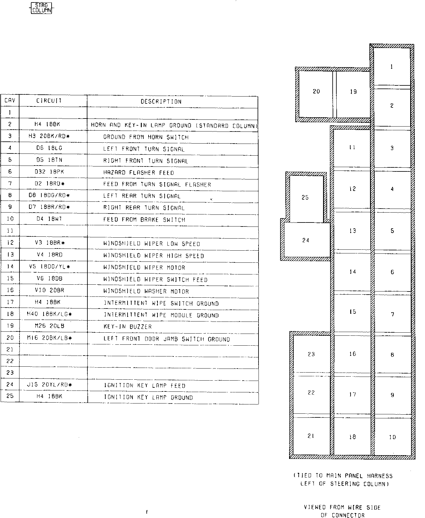 Fig. 8 Instrument Panel To Steering Column Connector (25 Way, Part 1 of 2). 1985:
