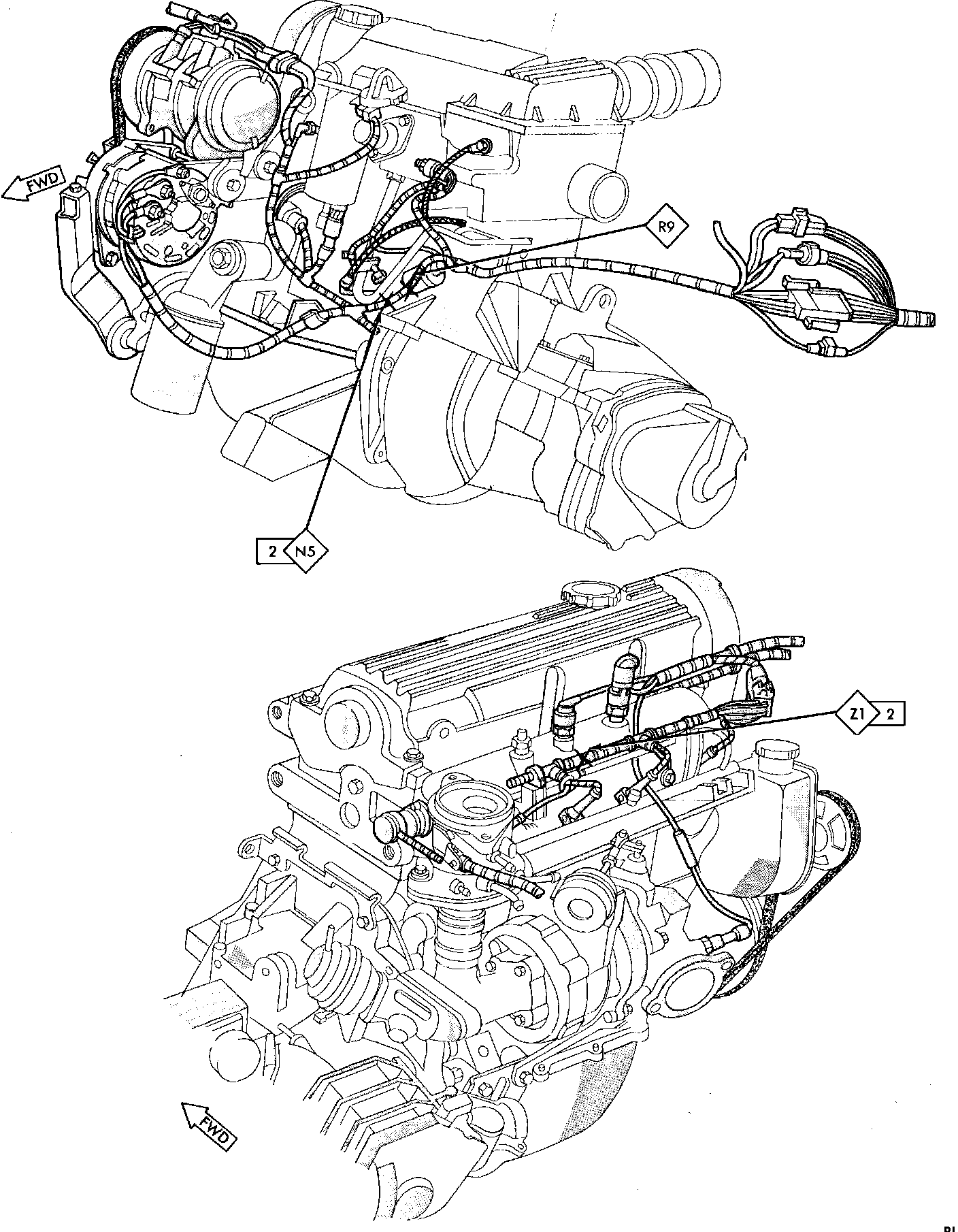 Fig. 57 Splice Location (Engine). 1985 W/2.2 Litre Turbo: