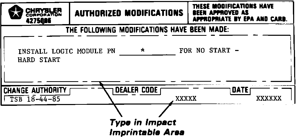 1 Authorized Modification Label PN 4275086