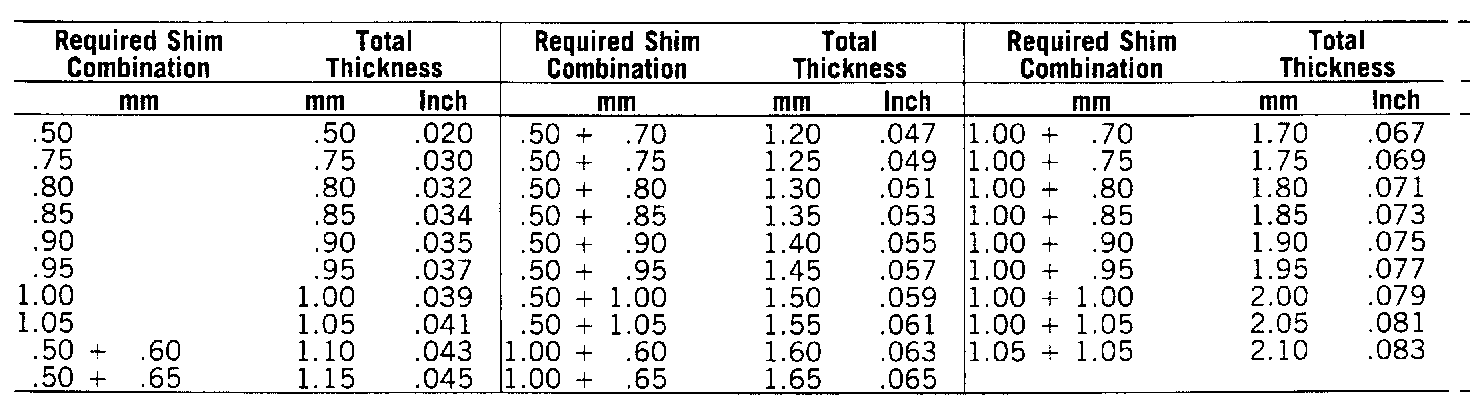 DIFFERENTIAL BEARING SHIM CHART