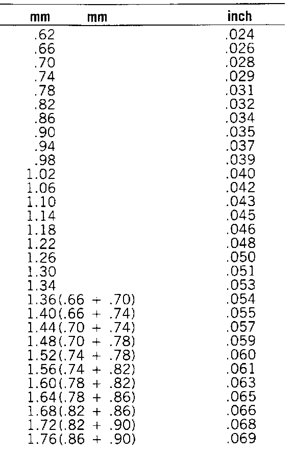INPUT SHAFT SHIM CHART