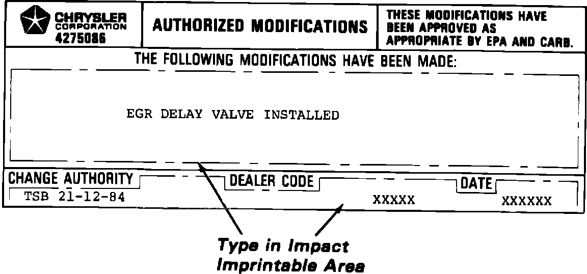 2. EGR Valve Delay Package, PN 4364398, must be installed in the EGR valve vacuum hose as shown in Figure 1.