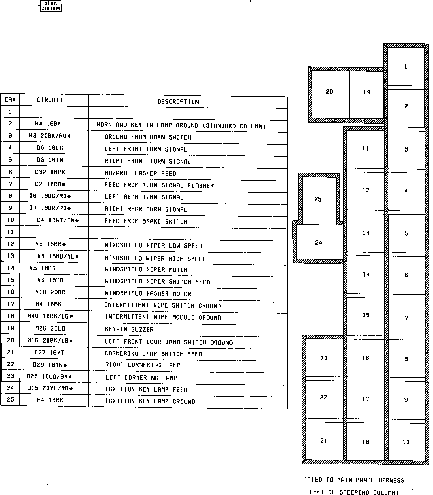Fig. 11 Instrument Panel To Steering Column Connector (25 Way, Part 1 of 2):