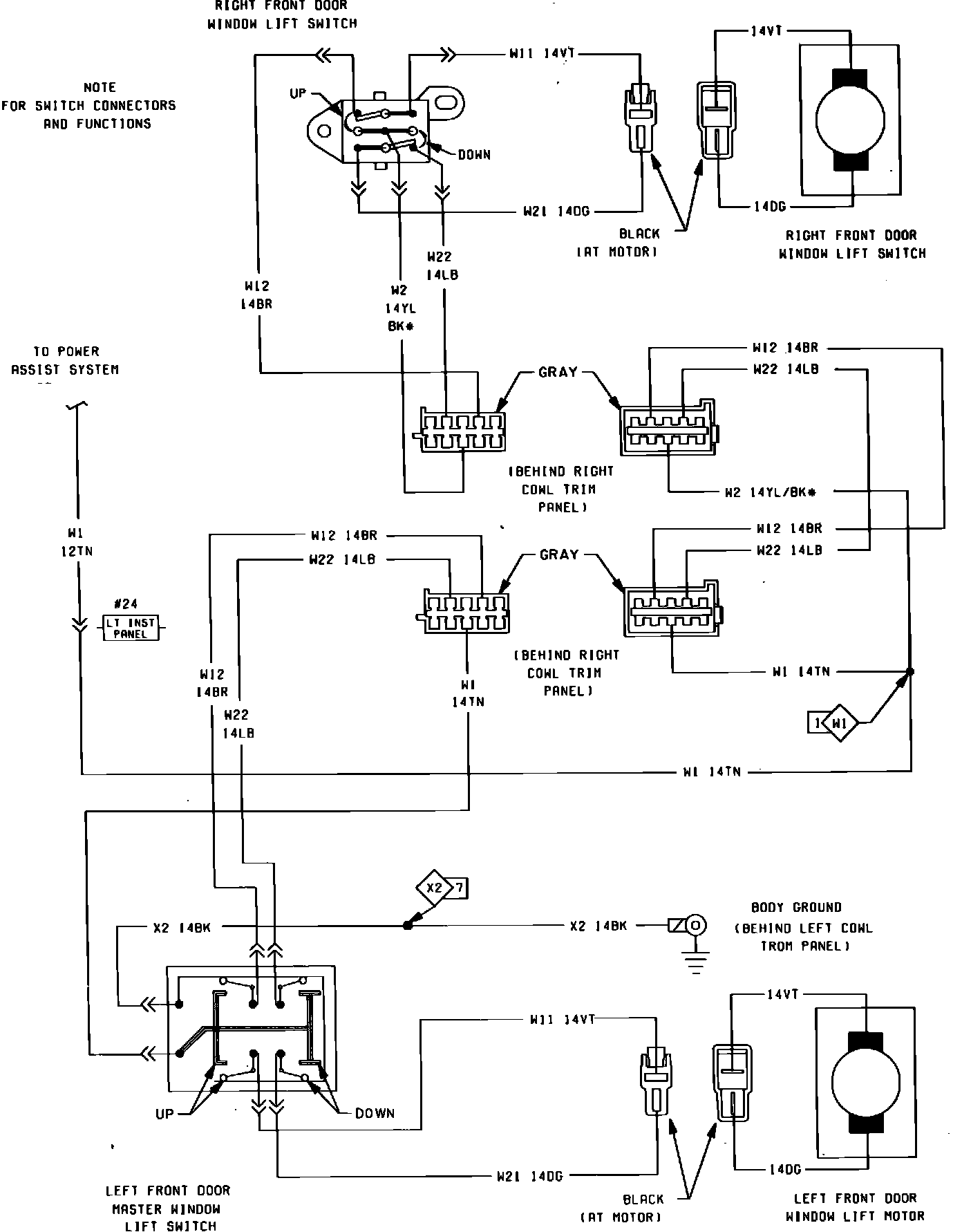 Fig. 59 Power Window System Wiring Circuit. LeBaron & 600 W/Hardtop: