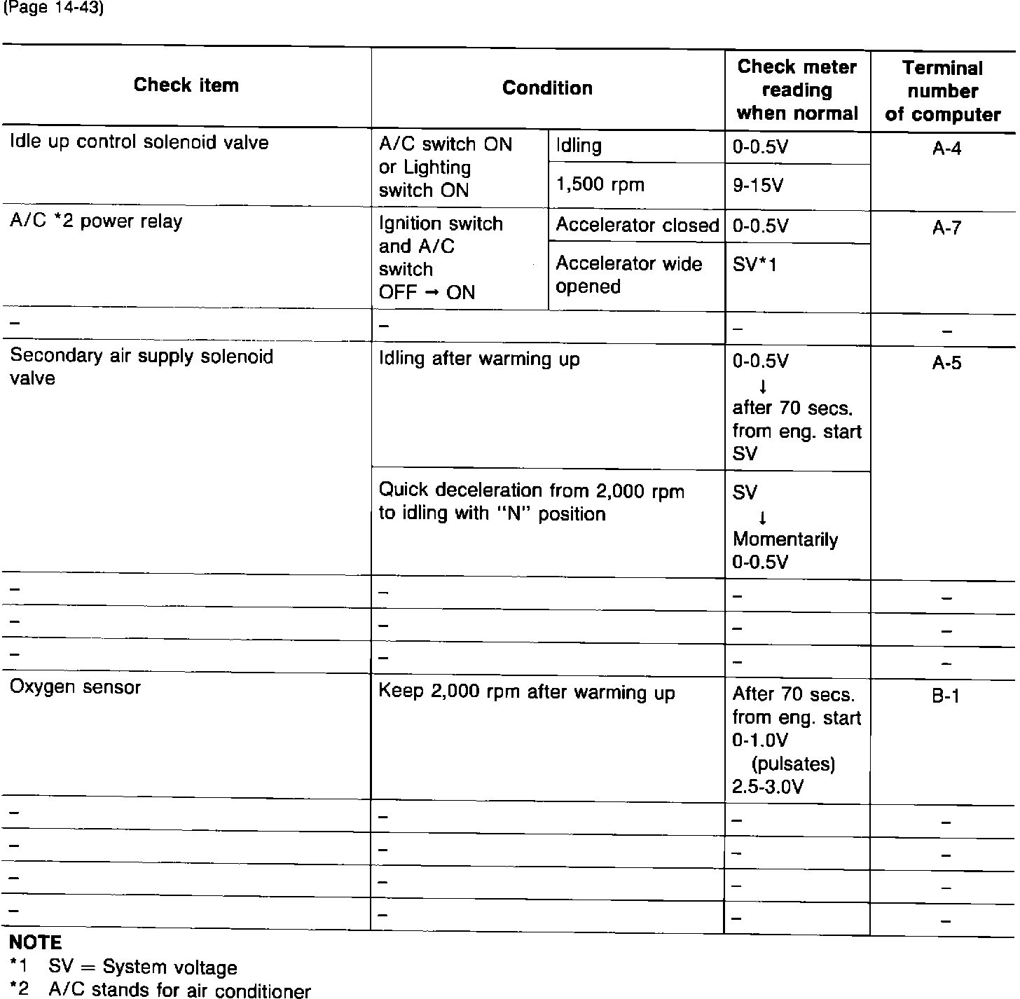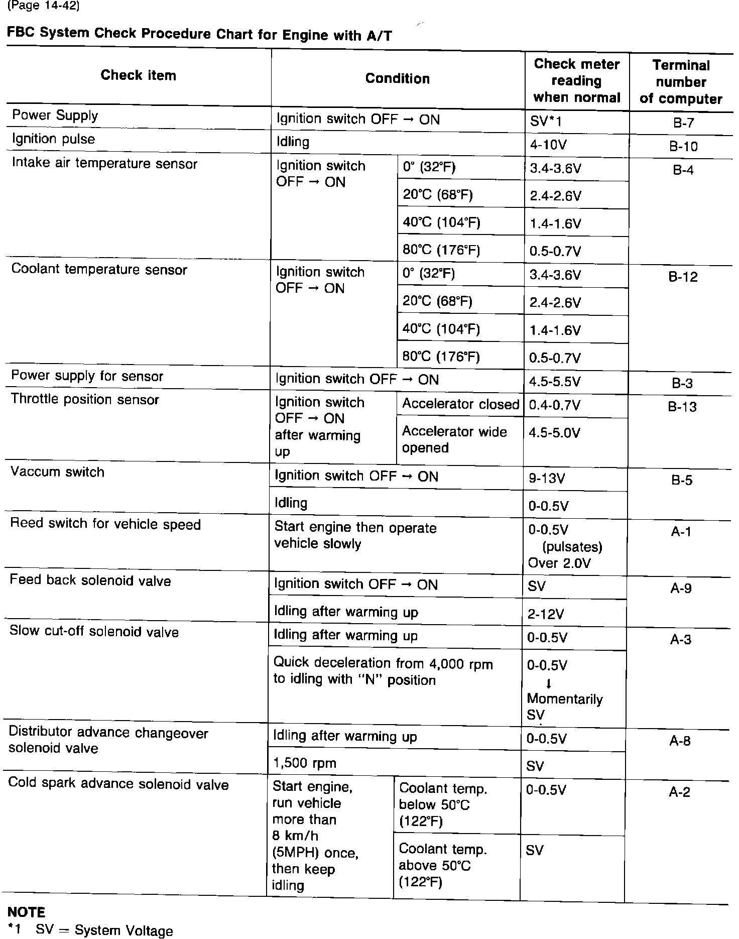 FBC System Check Procedure Chart For Engine With A/T