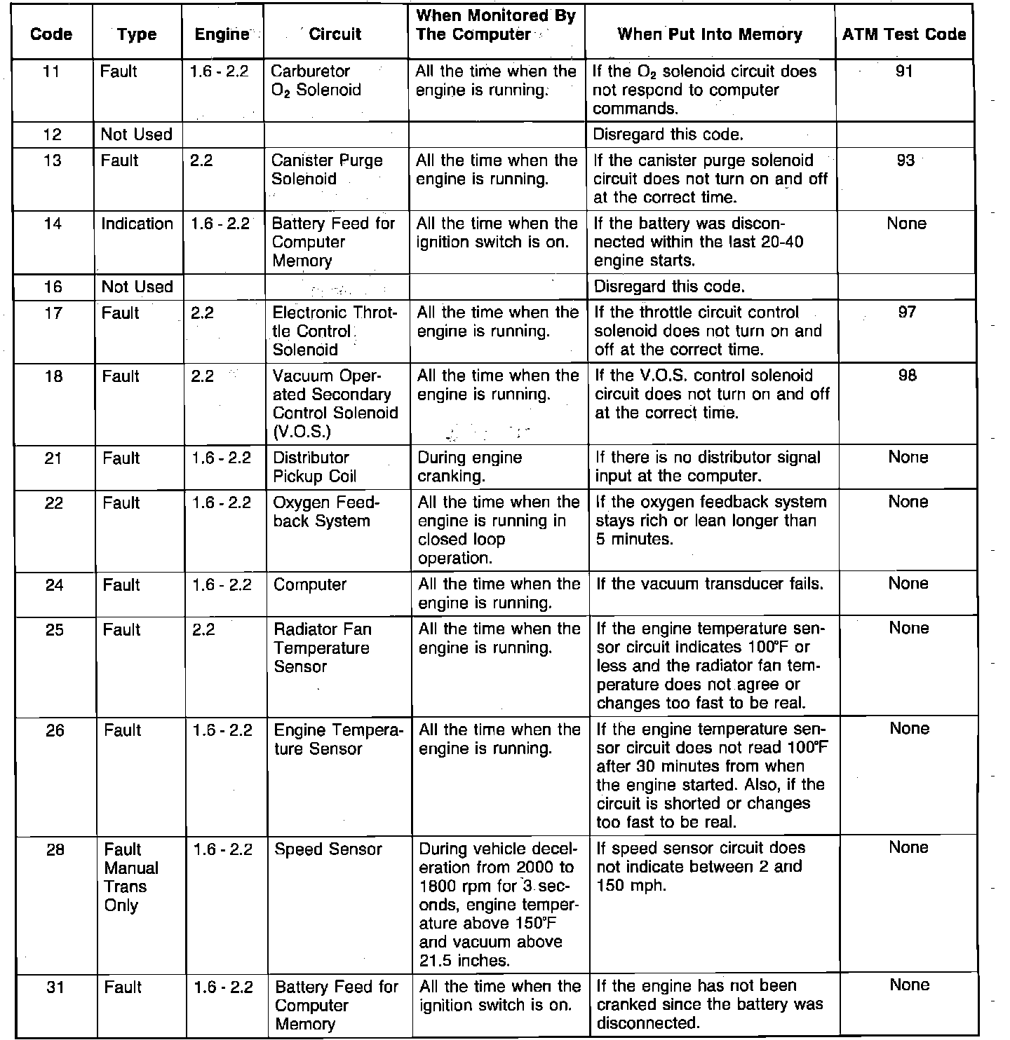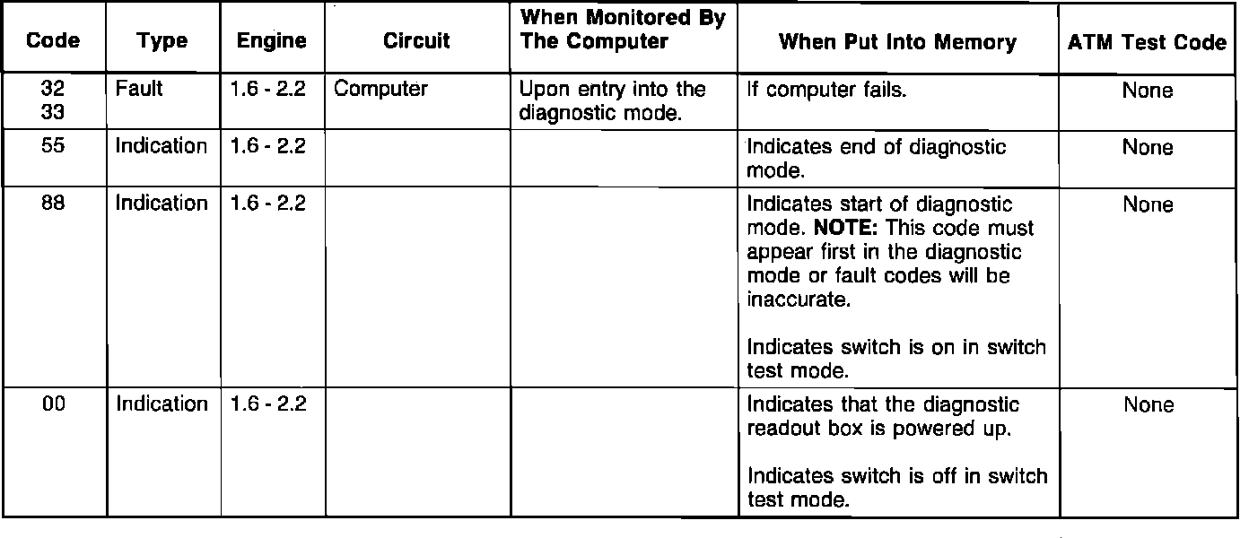 Diagnostic Test Codes