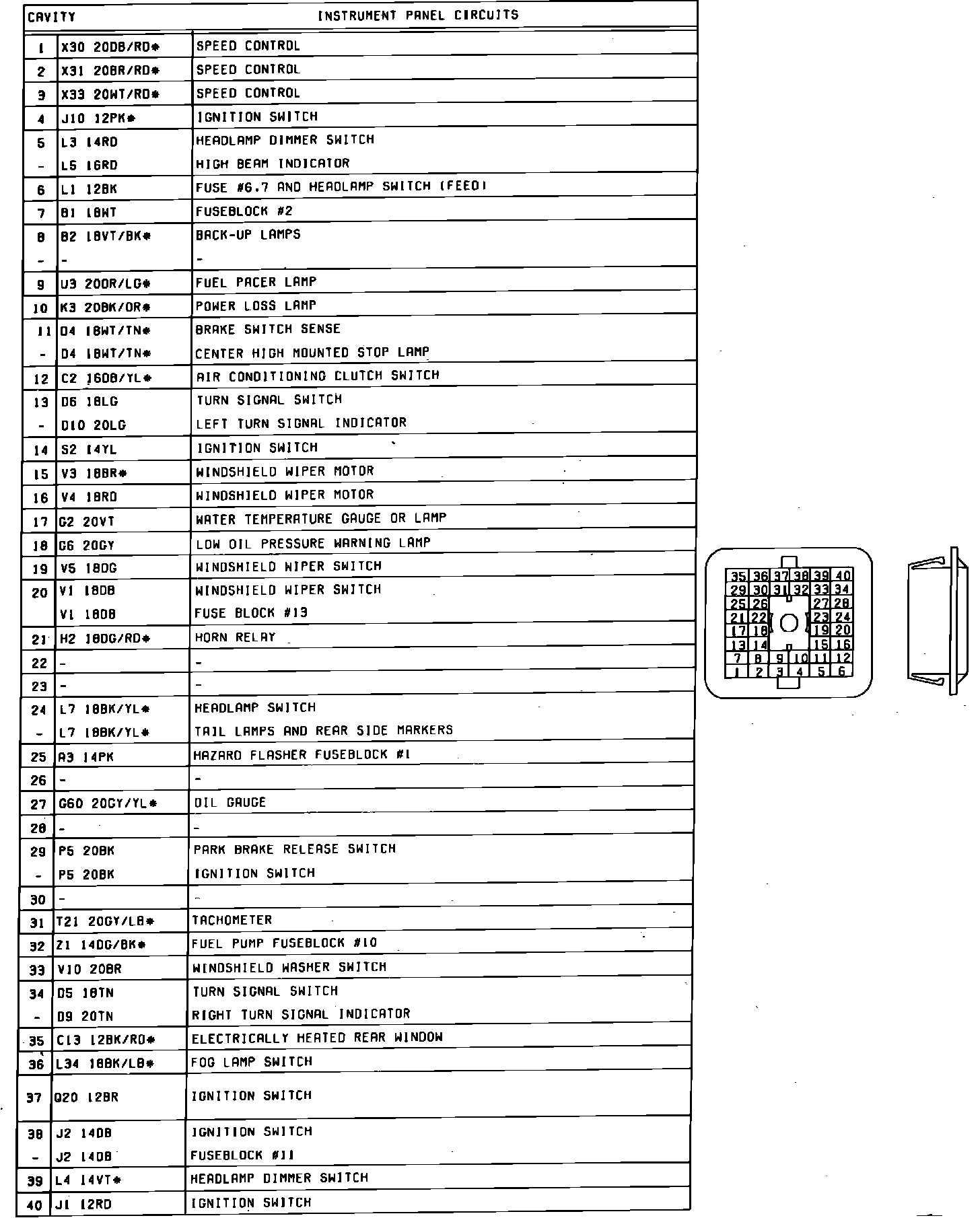 Fig. 4 Bulkhead Connector (40 Way). Instrument Panel Side: