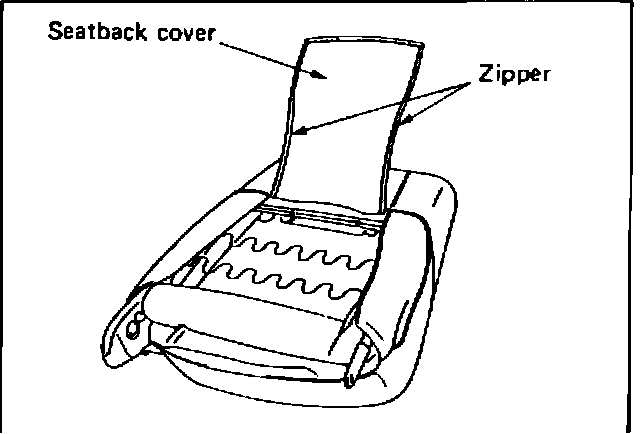 CAUTION: SEATBACK COVER MUST BE RAISED BY FIRST PRESSING DOWN URETHANE CUSHION OF SEATBACK IN ORDER NOT TO DAMAGE SEATBACK COVER.