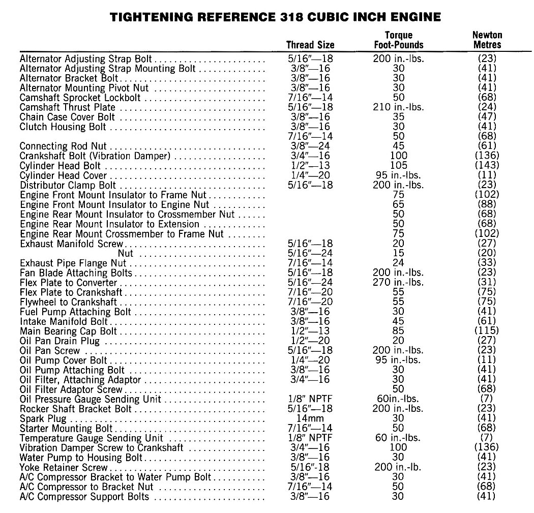 Grand Fury/Salon V8-318 5.2L VIN 4 2-BBL