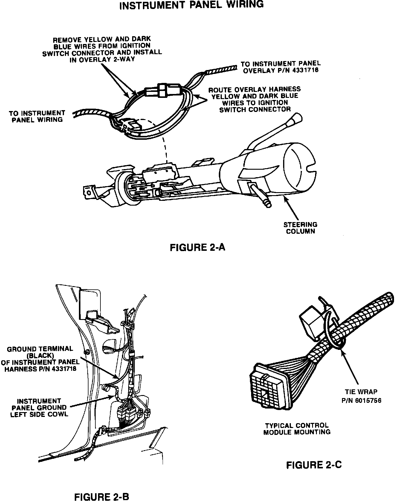 Install the bare terminal yellow wire of the instrument panel overlay harness, PN 4331718, into the previously vacated cavity in the ignition switch connector (Figures 2-A and 5).