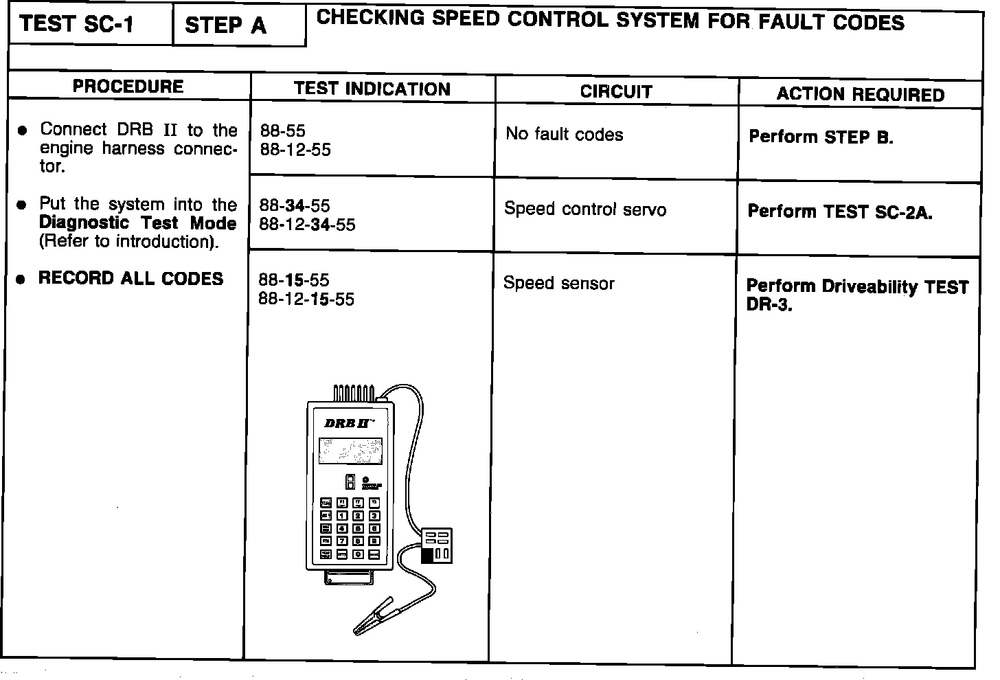 Test 1-Step A, Checking Speed Control System For Fault Codes: