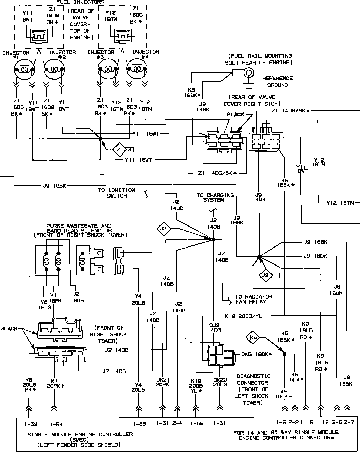 Electronic Fuel Injection System Wiring Circuit. With Turbocharger: