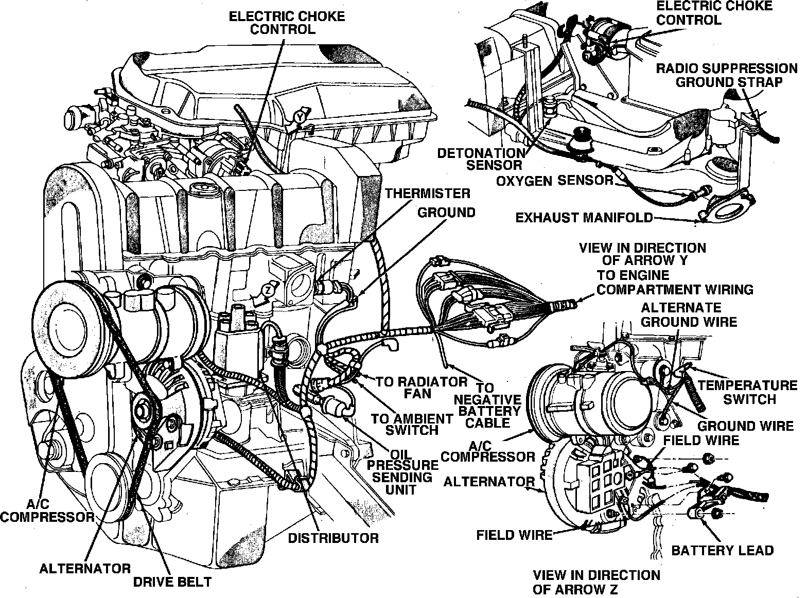 Compartment location. 4 cyl. carbureted & non-turbocharged engines (Part 2 of 2):