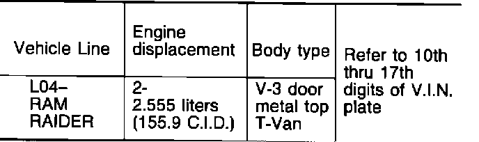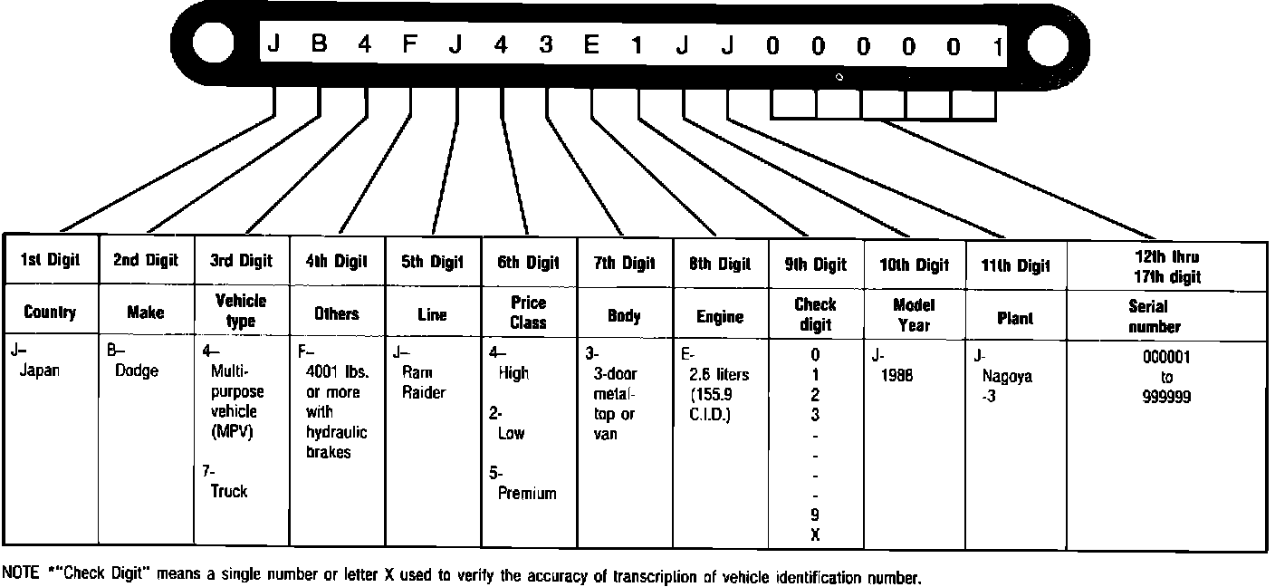 VEHICLE IDENTIFICATION CODE CHART PLATE