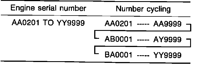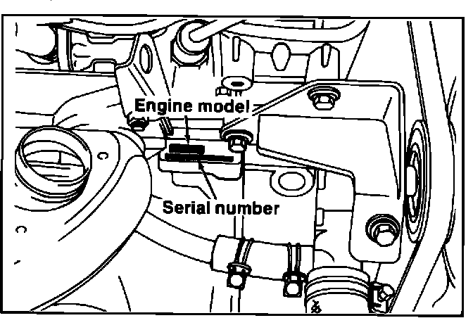 The engine model number is stamped at the right front side on the top edge of the cylinder block as shown in the following: