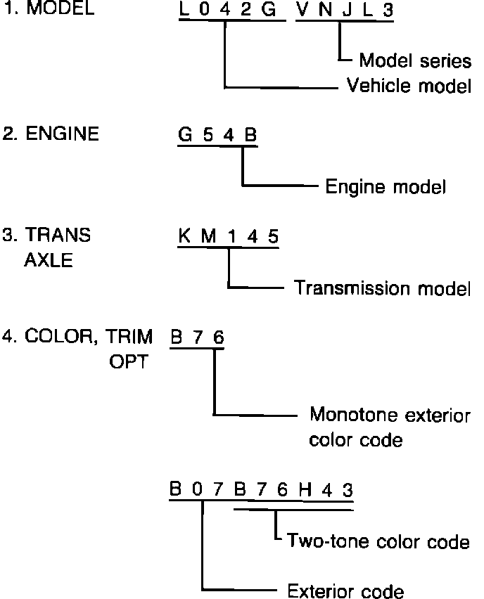 Two-tone exterior is shown by the exterior code followed by the two color codes.