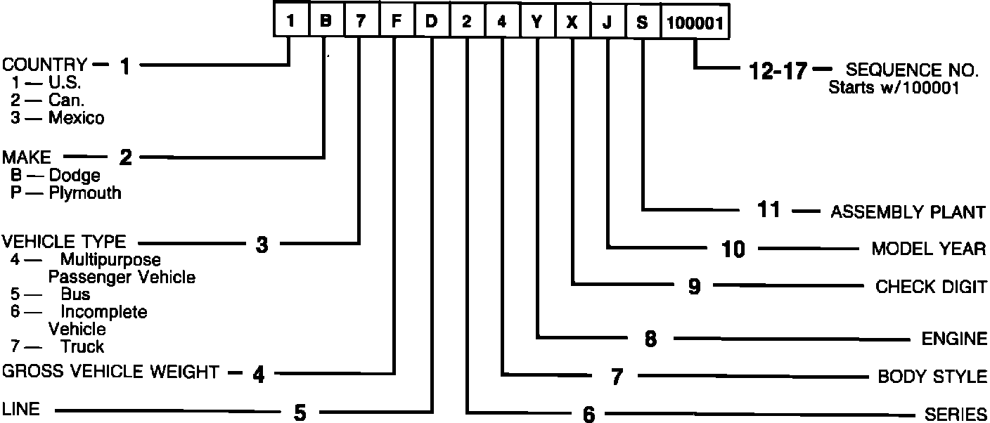5th POSITION LINE B - Ram Wagon/Van D - Ramcharger 4 x 2 Ram Pickup 4 x 2 Ram Chassis Cab 4 x 2 K - Caravan Wagon Mini Ram Van W - Ramcharger 4 x 4 Power Ram Pickup 4 x 4 Ram Chassis Cab 4 x 4 H - Voyager Wagon N - Dakota 4 x 2 R - Dakota 4 x 4