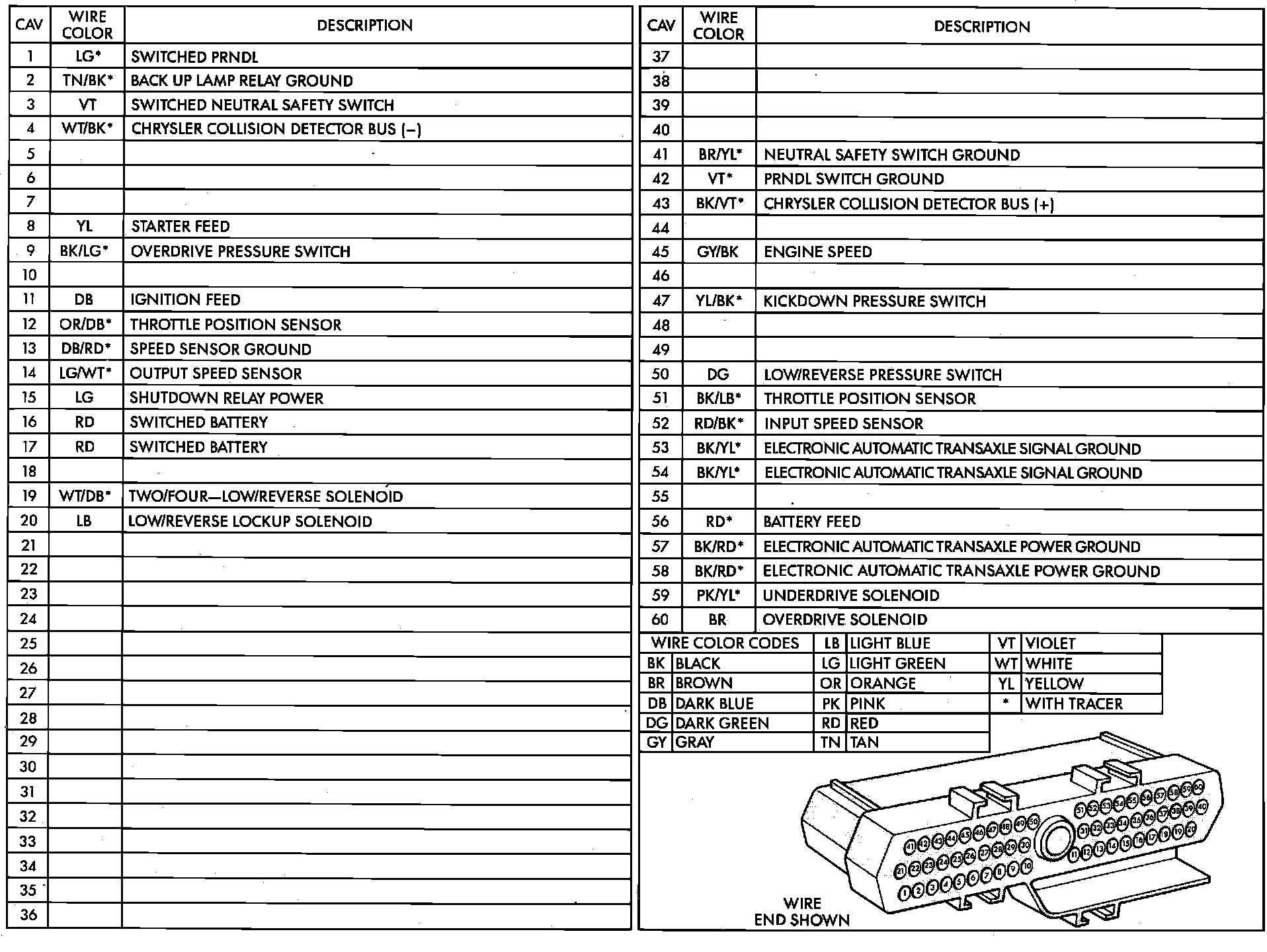 60-Way Electronic Automatic Transmission Controller (EATX) Connector: