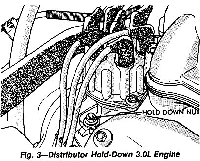 4. Remove distributor hold-down nut, then carefully lift distributor from engine.