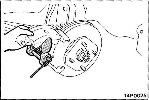 - After installing the caliper support to the knuckle, expand the piston, and then install the caliper body.