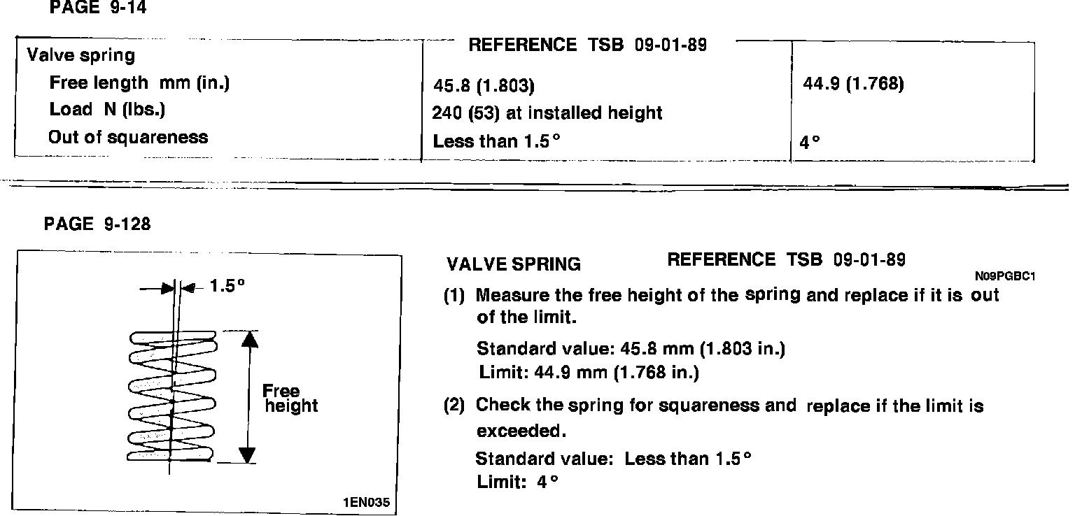 Please make a note referencing this TSB 09-01-89 in your 1989 Colt/Summit Import Service Manual (Publication #81-270-9011) Pages 9-14 and 9-128 as shown in Figure 1 on reverse side.