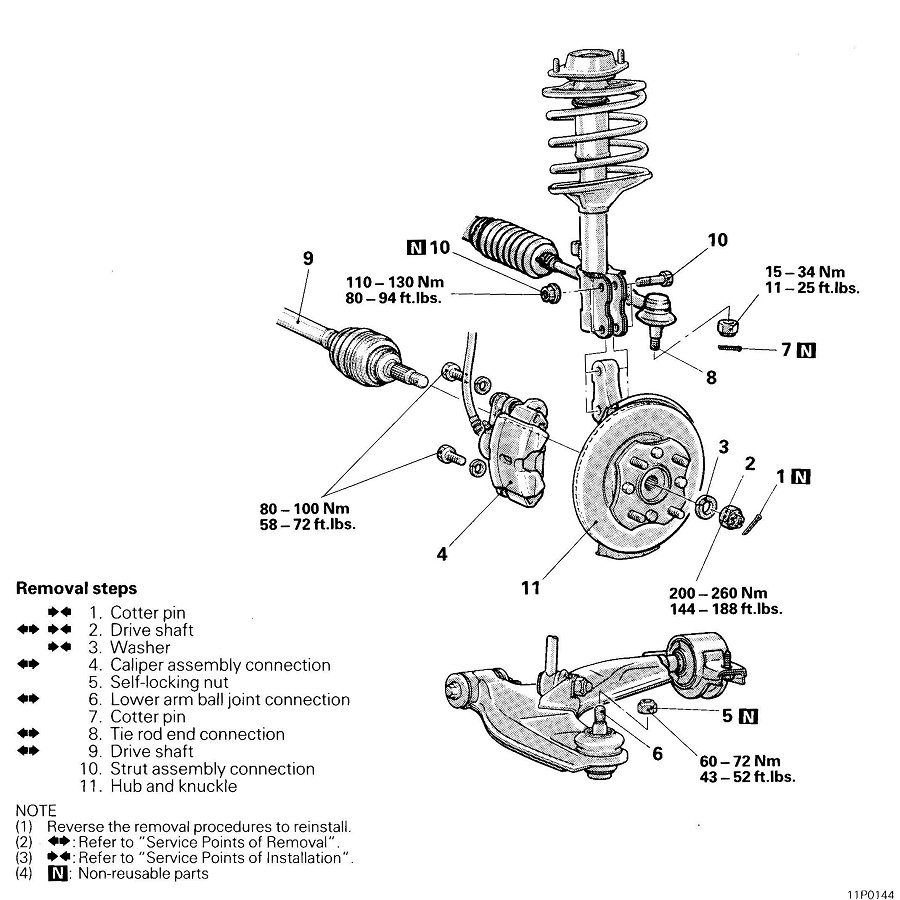 - NOTE: If the meshing of the wheel bearing outer race and the knuckle, or of the wheel bearing inner race and the hub, is loose, replace the bearing.