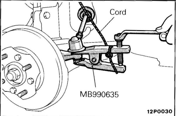 - Using the special tool, disconnect the tie rod end from the knuckle.