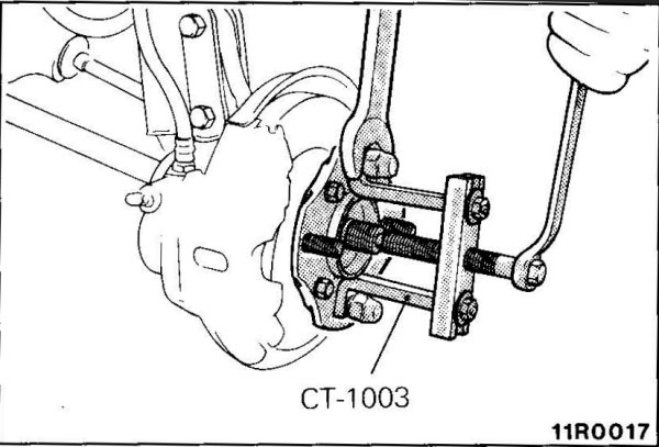 - Use the special tool to push out the drive shaft from the front hub.