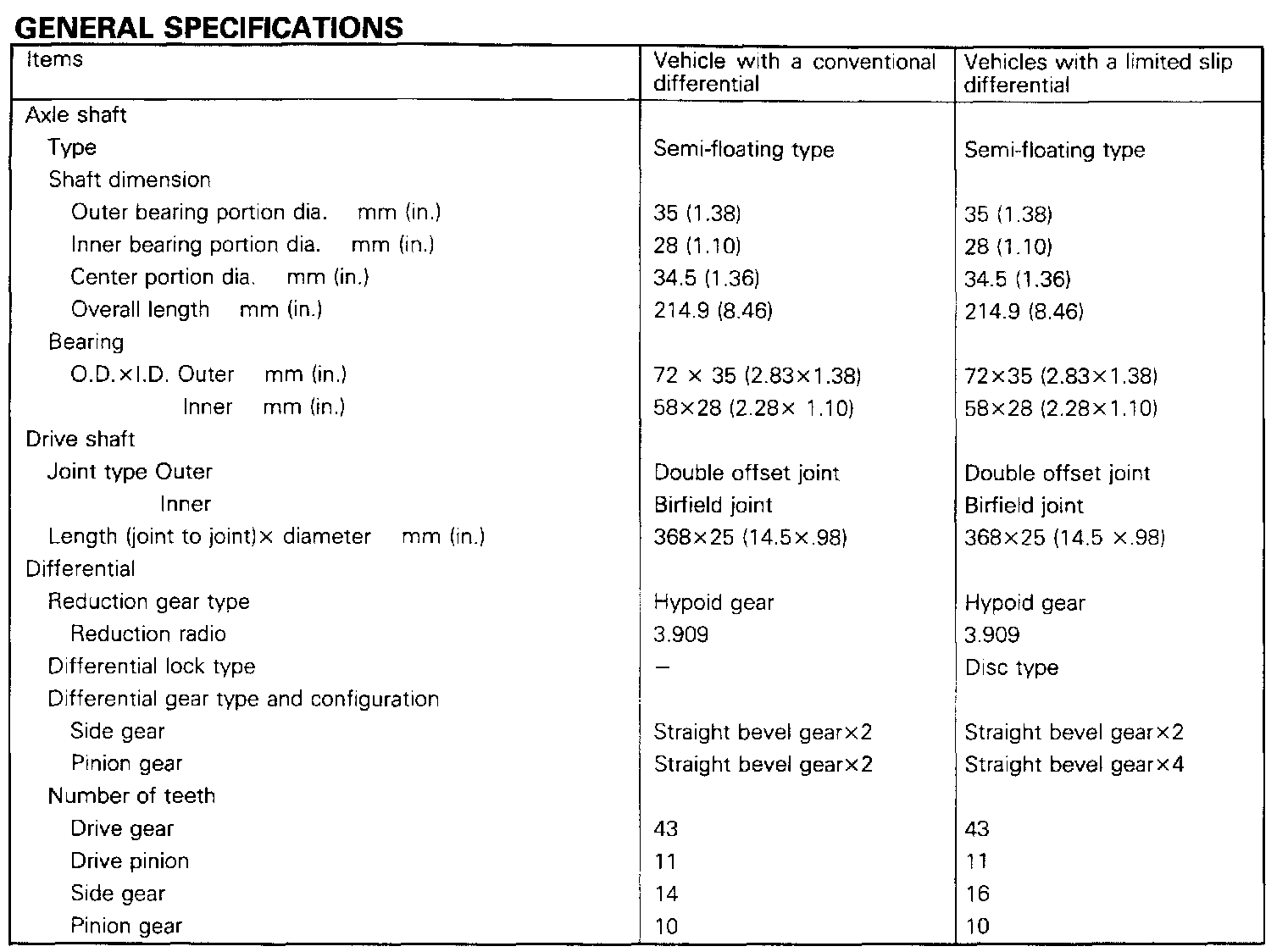 General Specifications:
