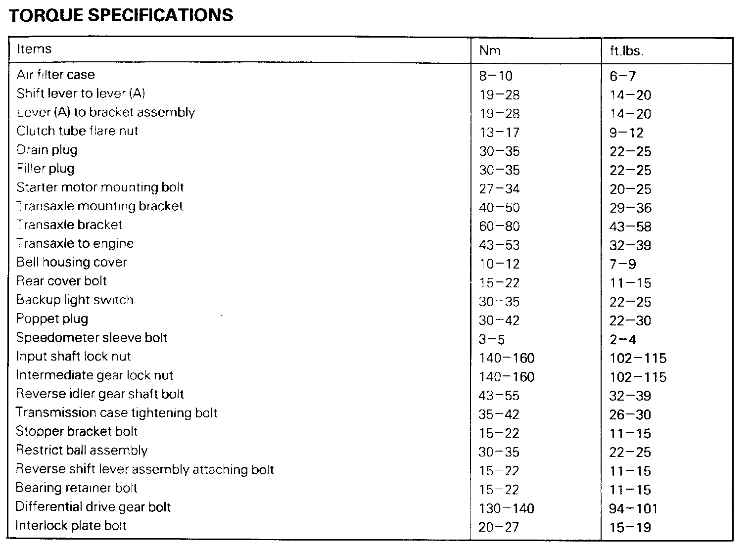 Torque Specifications: