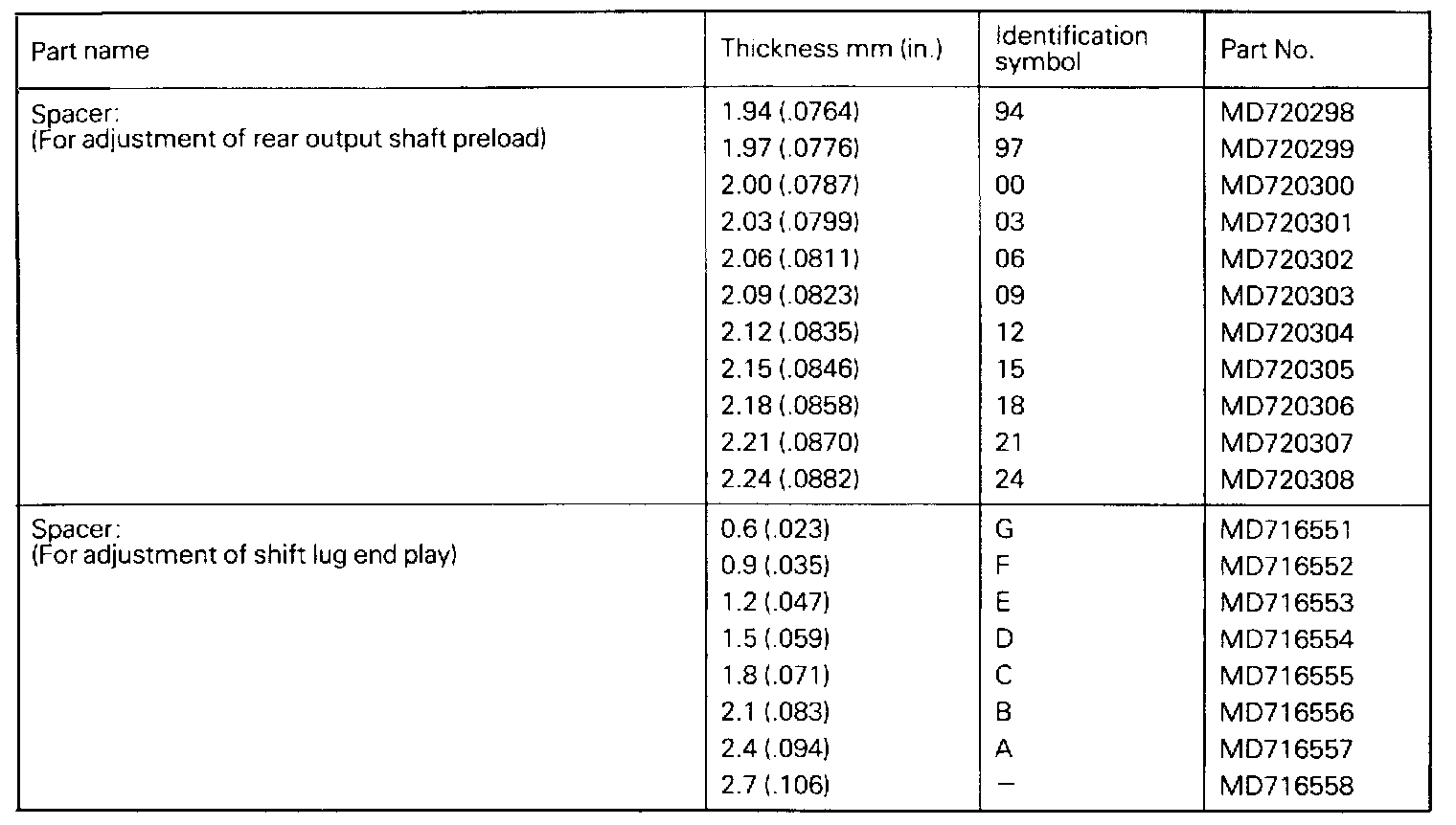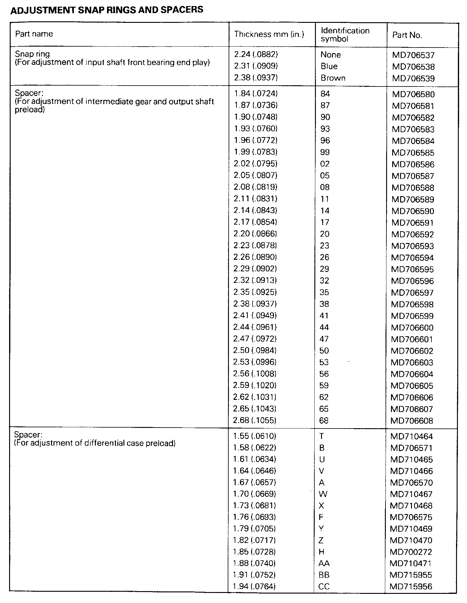 Adjustment Snap Rings And Spacers: