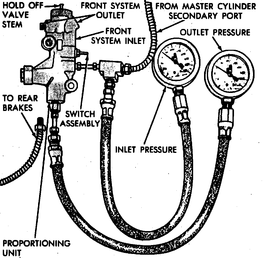 3. While watching pressure gauges, have an assistant depress the brake pedal. Note gauge readings, then refer to Brakes and Traction Control/Brakes/Specifications/Mechanical.