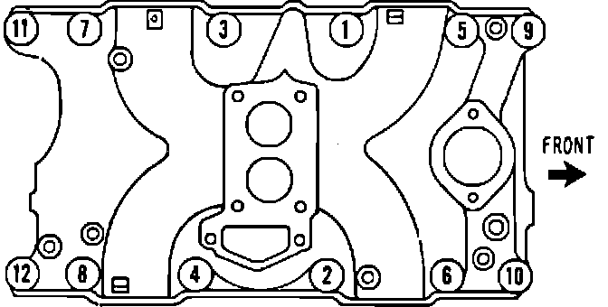 b. Install intake manifold, tighten all bolts finger tight, then torque bolts to specification in sequence shown in Fig. 6.