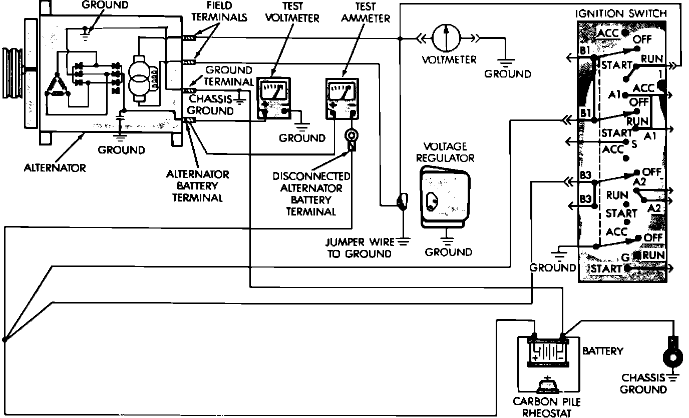 7. If ammeter reading is not approximately that of alternator rating, repair or replace alternator.