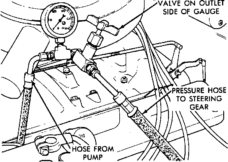 6. If pressure is low in step 4 and satisfactory in step 5, steering gear is defective.