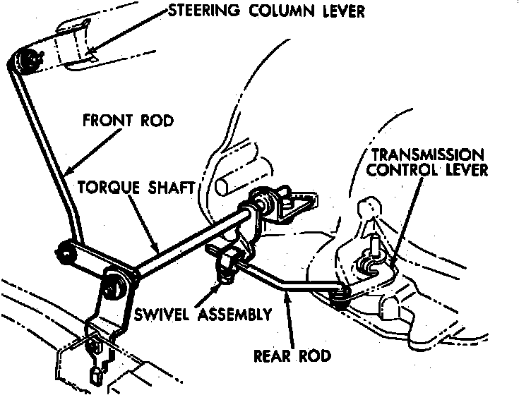 2. Place selector lever in P and move transmission control lever all the way to rear (in P detent).