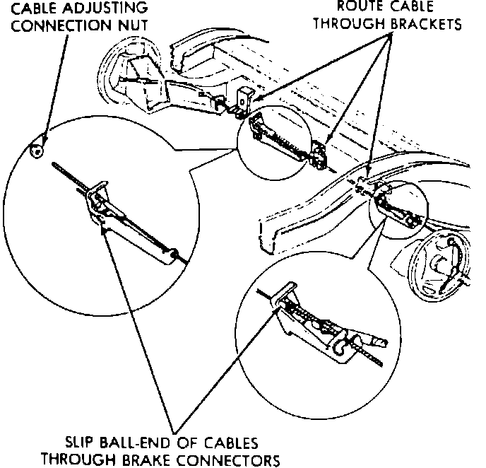 5. Release parking brake cables from bracket by slipping ball-end of cables through brake connectors.