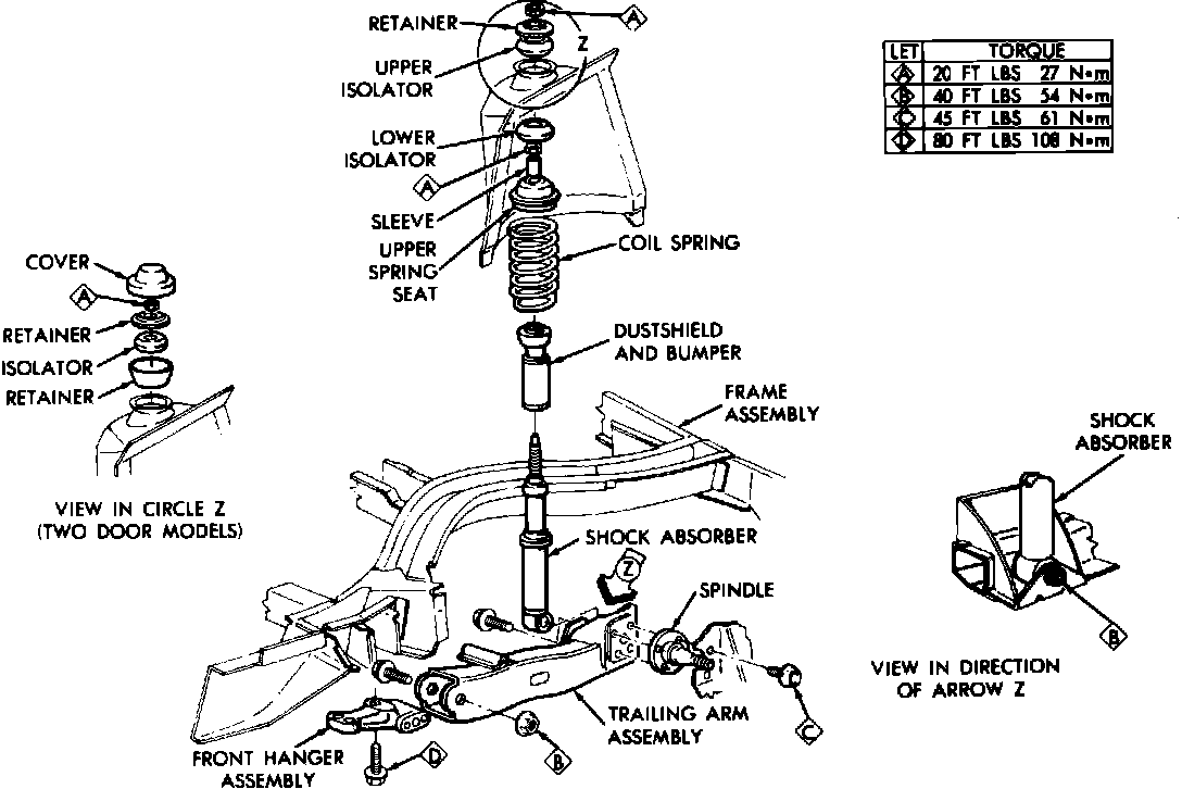 Fig. 4 Rear Axle & Suspension Assembly. Horizon & Omni: