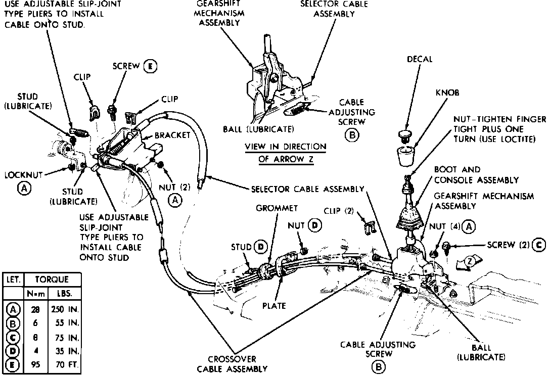b. Adjust selector cable and torque adjusting screw to specification7. The selector cable adjusting screw must be properly torqued.