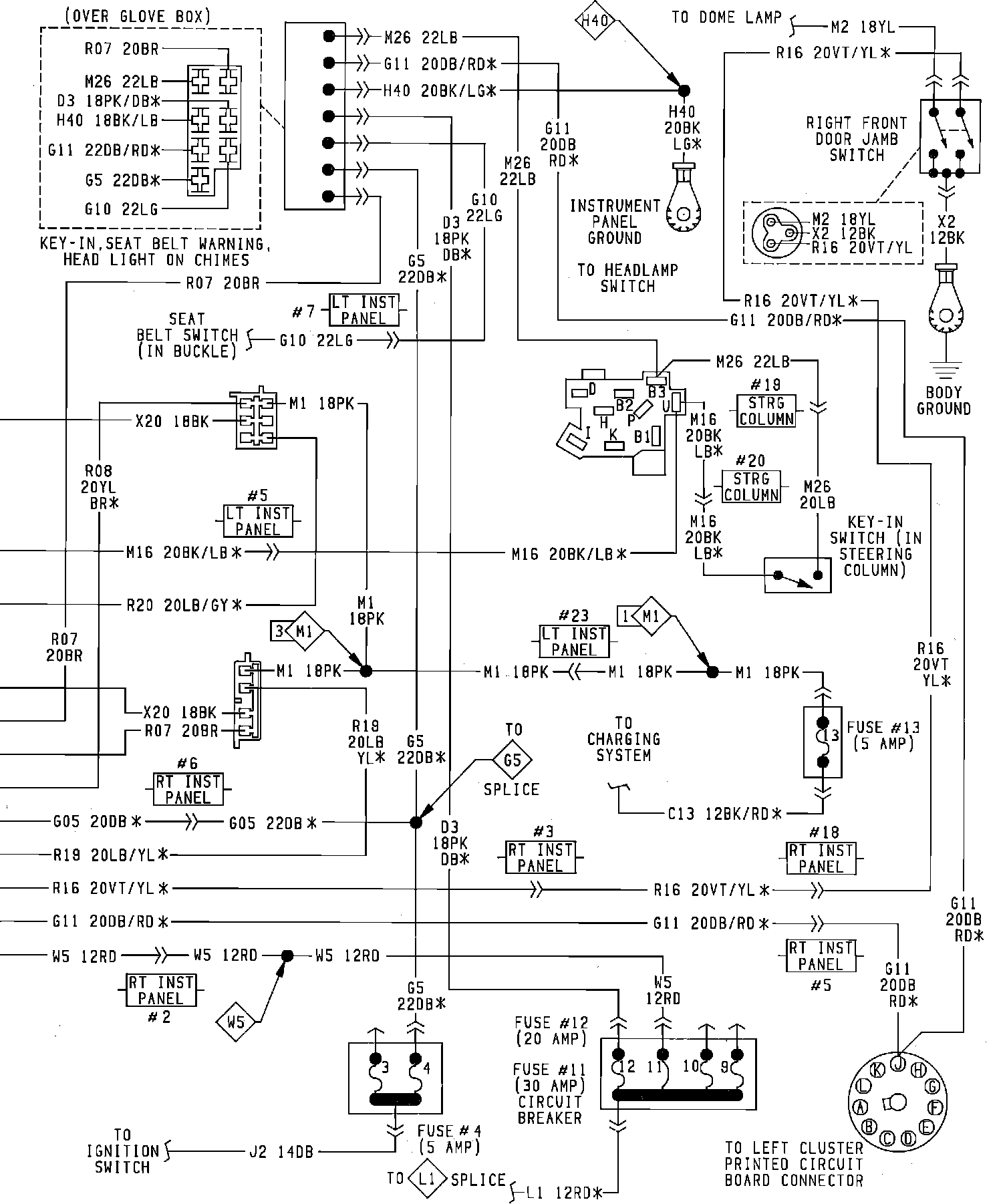 Courtesy Lamps & Seat Belt Warning System Wiring Circuit: