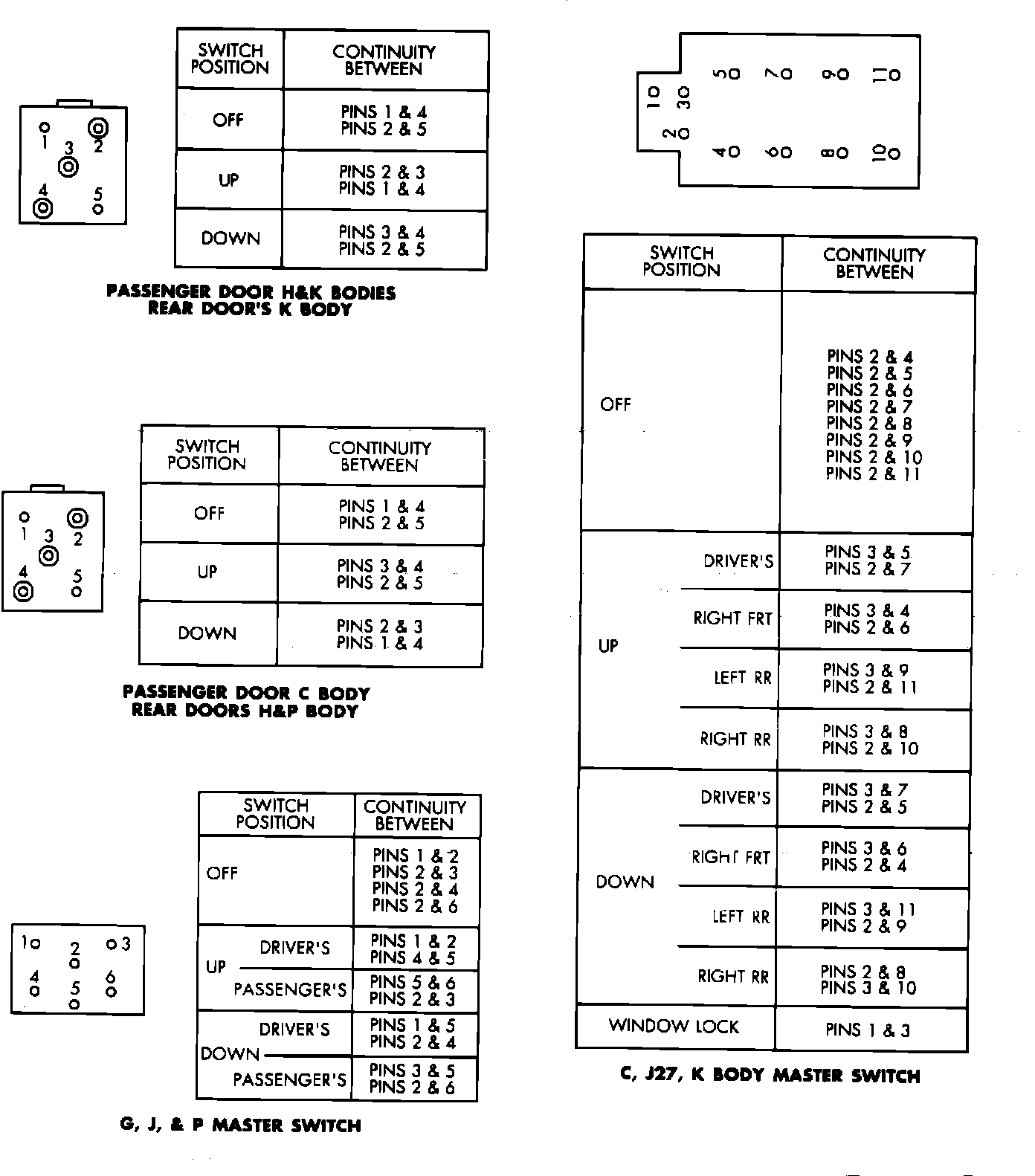 4. Use an ohmmeter to check the switch for proper continuity in the indicated switch positions.