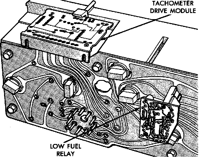 The tachometer drive module is located on the top right corner of the instrument cluster assembly.