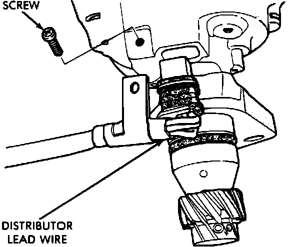1. Remove protective cover from the distributor housing. Remove lead wire clamp screw and remove lead wire.