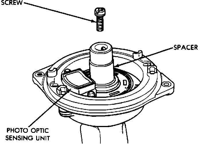 3. Remove bushing and 3 photo optic sensing unit fasteners. Remove unit from distributor housing.