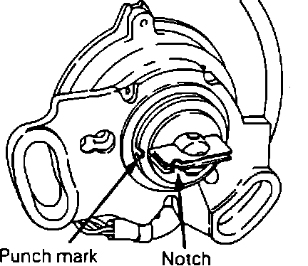 b. Align punch mark on crankshaft angle sensor housing with notch in plate as shown in Fig. 29.