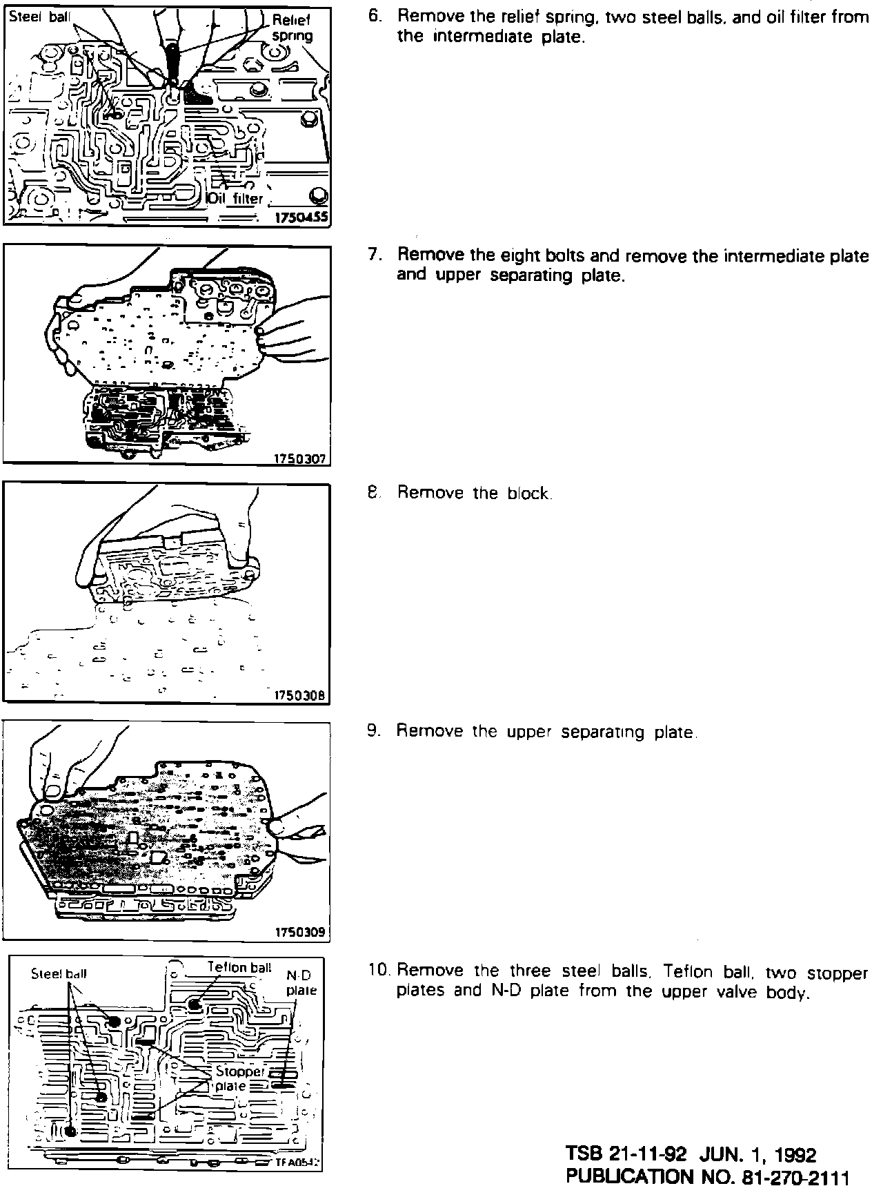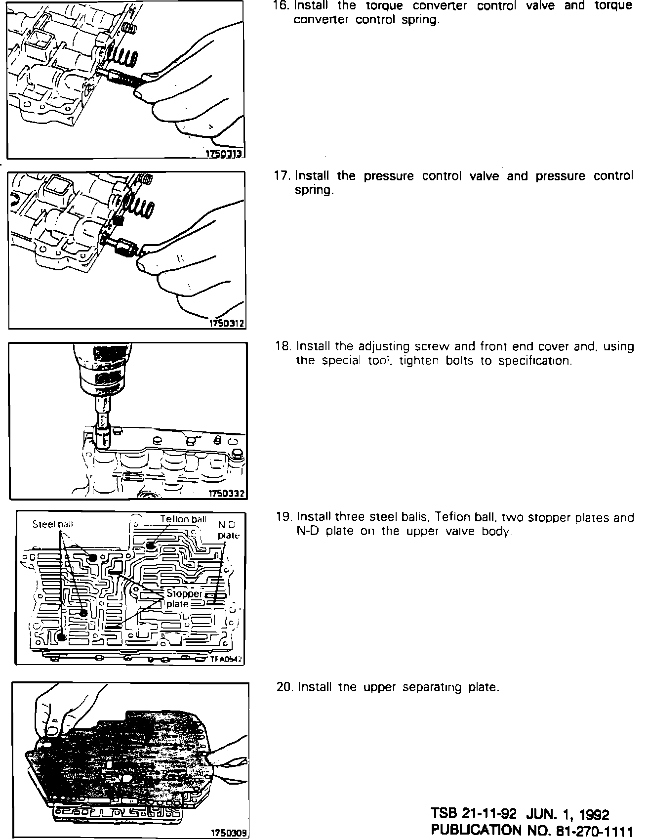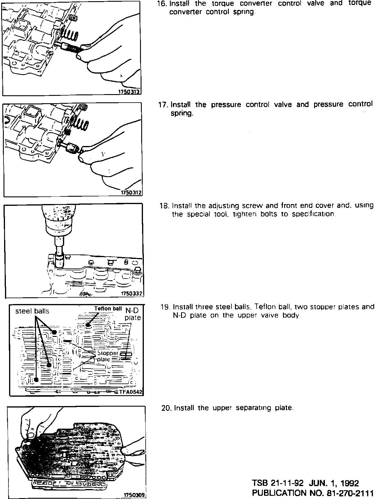 This Technical Service Bulletin contains revised service manual pages. The revisions are printed in red. The N-D Plate location in the valve body has been corrected.