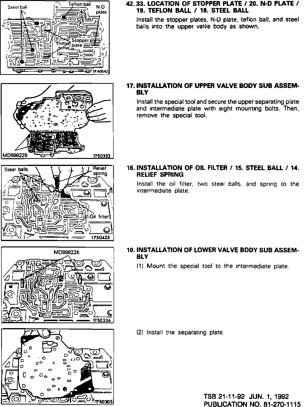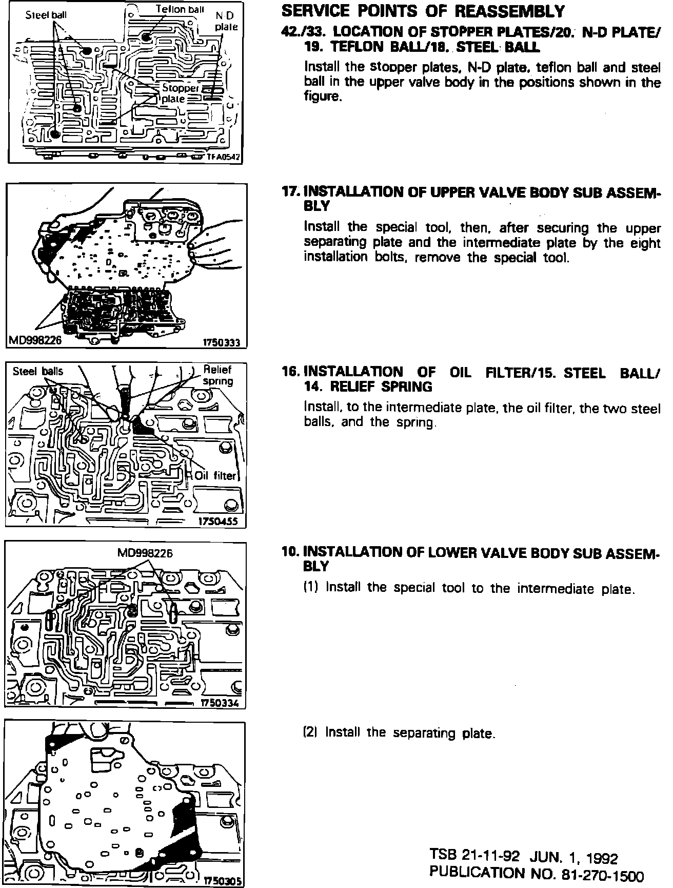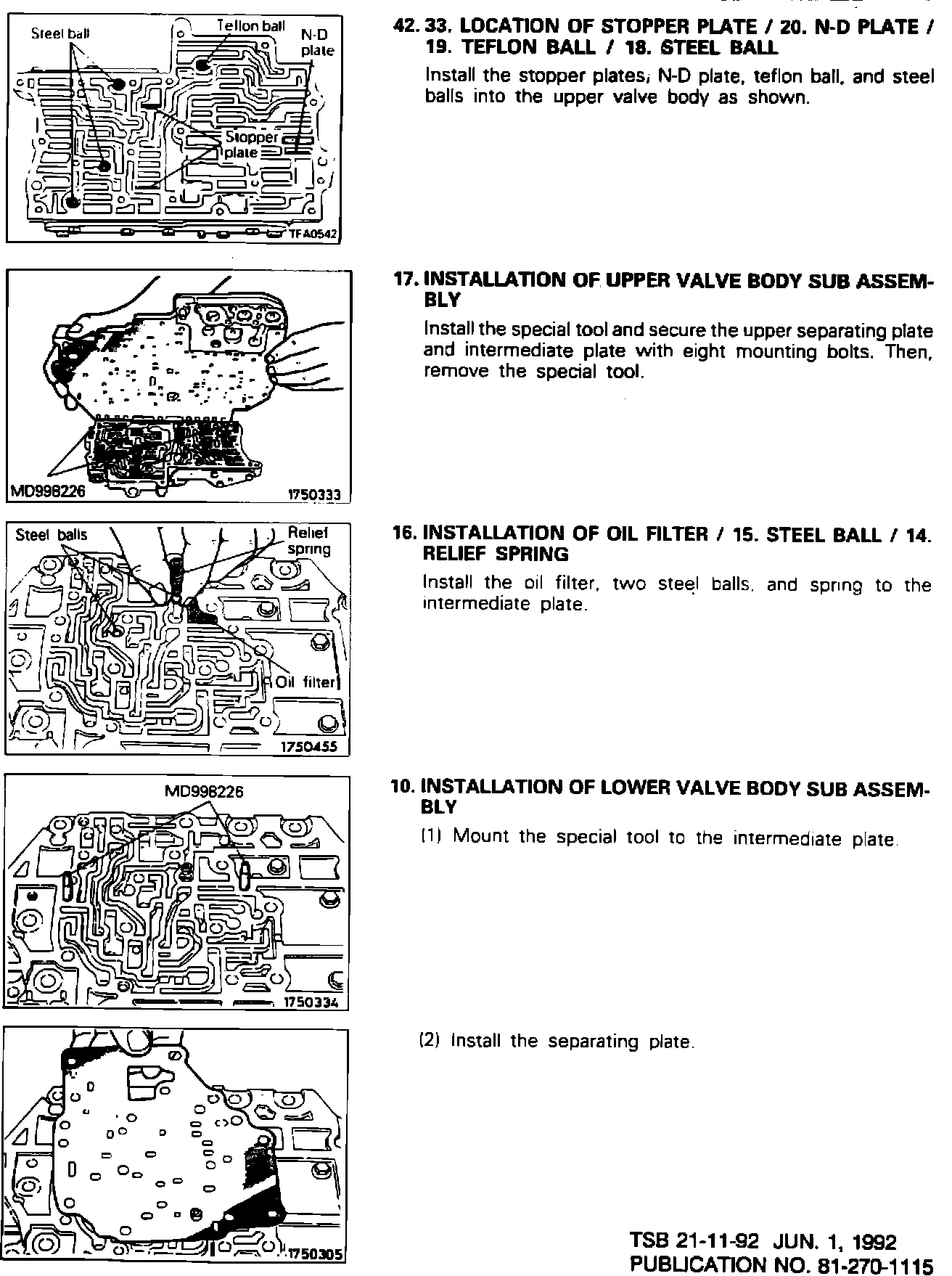 This Technical Service Bulletin contains revised service manual pages. The revisions are printed in red. The N-D Plate location in the valve body has been corrected.