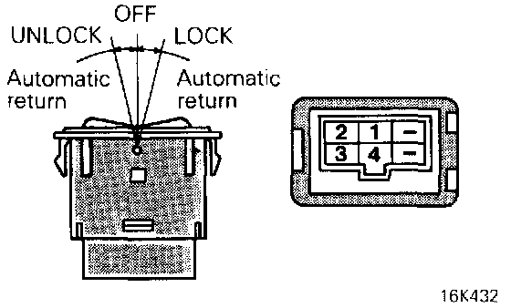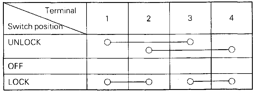 Operate the switch, and check the continuity between the terminals as indicated by the chart below.