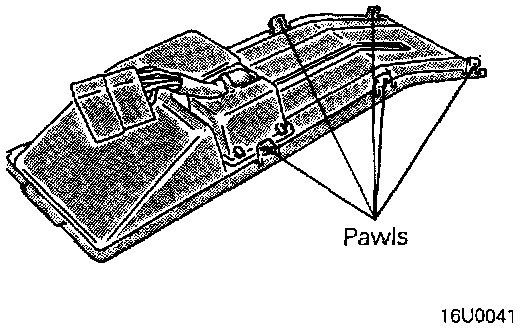 Remove the parking brake cover with its pawls depressed.